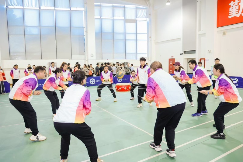 本届拓展活动共设五个集体项目,每个赛项均考验团队的协作能力、应变能力和精神意志。在“力拔山河”项目中,王纯玉副校长亲自上场参赛,16位队员心往一处想,劲往一处使,最终战胜同济大学,充分展现了震旦人上下同心、奋力拼搏的精气神。在“意气相投”项目中,我校代表队突破自我,投射6发6中,这份默契与成长,将成为我们日后工作中最宝贵的财富。