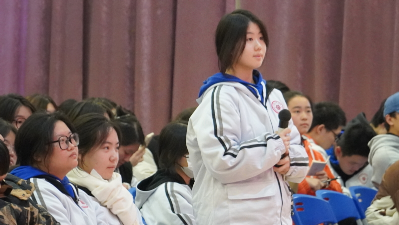 王曙群还与学生进行了现场互动。同学们频频举手提问,王曙群老师一一作答,并鼓励同学们要坚守初心、不断学习,发扬“特别能吃苦、特别能战斗、特别能攻关、特别能奉献”的精神。同学们近距离接触榜样人物,直面交流,向劳模看齐。