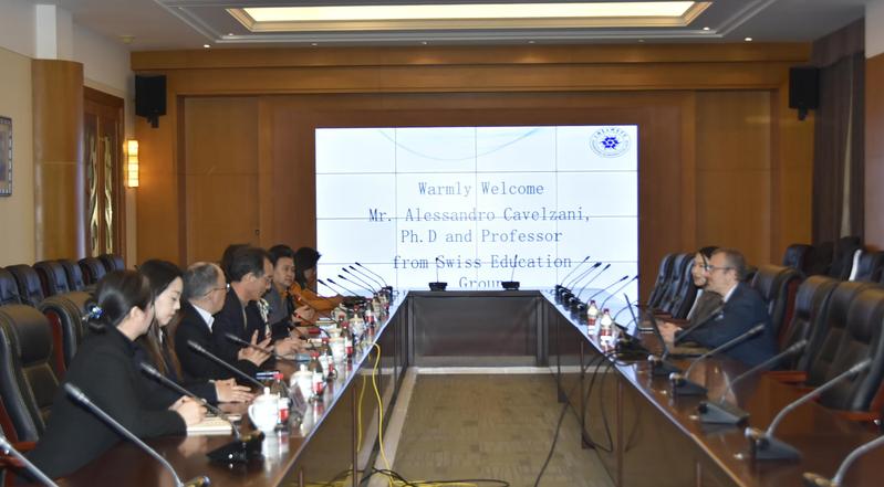 2025年4月3日下午,瑞士教育集团恺撒利兹大学Alessandro Cavelzani教授来访我校。我校校长蒋心亚、国际交流处处长金臣忠、经济与管理学院副院长曹凤兰及相关部门负责人在学校国际会议中心会见来访团并举行欢迎仪式。欢迎仪式由蒋心亚校长主持。