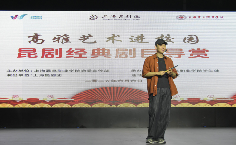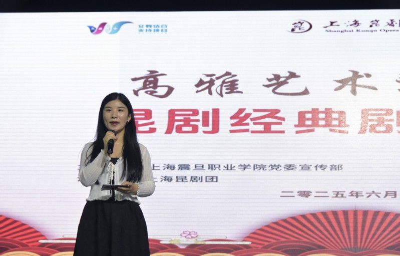 为弘扬中华优秀传统文化,推进校园艺术文化建设蓬勃发展,强化学校美育育人功能,6月6日下午,学校联合上海昆剧团举办文教结合支持项目“高雅艺术进校园”主题活动,特邀上海昆剧团优秀青年演员卫立老师为师生带来昆剧经典剧目导赏。五百余名师生共同参与活动,活动由校团委副书记李灵悰主持。