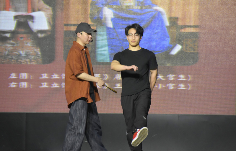 互动环节,卫立老师邀请几位学生上台,亲自指导他们学习昆剧的基本身段和动作。通过互动体验,完成了一次从理论认知到实践体验的艺术熏陶,不仅让在场学生加深了对昆曲的理解,更激发了他们对传统文化的热爱与传承意识。