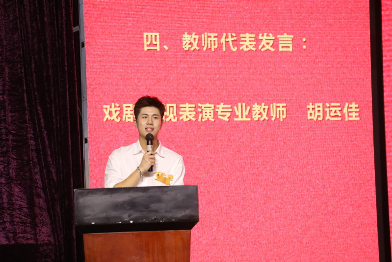 戏剧影视表演专业胡运佳老师代表教师勉励新生:大学是职业人生的“预备役”,需将热爱转化为日常刻苦的行动;“先学做人,再学做戏”,注重品德与细节;融入上海,汲取创作养分,并学会坚持、不惧挫折。他希望新生珍惜三年时光,用行动成就自己,与师友并肩成长。