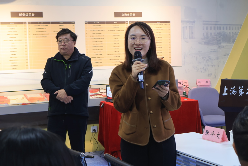 上海劳模学院常务副院长费维华从专业化、体系化角度,阐述了劳模精神在新时代人才培养中的核心地位,希望两校青年加强交流,共同弘扬劳模精神。