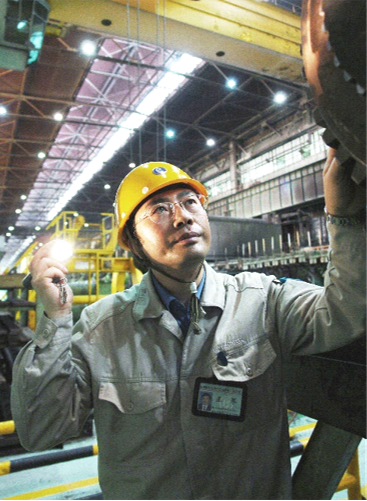 刚进厂时,热轧精整线处于开工调试阶段,王军努力学习,不放过向专家请教的机会。一次机架剪刃安装后因设计问题返工的经历,让他意识到国外先进设备也存在不足。此后,他不断实践,诞生了集团公司先进操作法《飞剪剪刃快速更换法》和专利《纵剪机架用割圈》,打破了“辅助岗位没有技术含量”的说法。