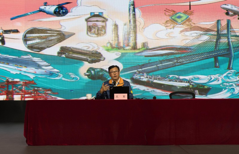 讲座现场,王军以“新时代产业工人可以像科学家一样工作”为主题,为同学们讲述了他和企业共同成长的发展历程,分享了他不断学习、精益求精、追求卓越的成长故事。他从理论学习、技能提升、迎接挑战、团队创新等多个维度,结合自己的亲身经历,生动诠释了“将论文写在车间”的实践哲学,传递了对工作的热爱和对创新的追求。他强调,新时代青年要构建核心竞争力,以学习和创新为人生目标,努力成长为堪当民族复兴重任的时代新人。最后,他带领全体师生朗诵劳动颂(节选),将现场气氛推向高潮。