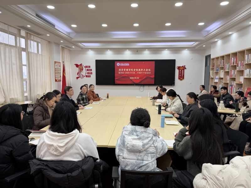 为扎实推进新学期各项工作有序开展,进一步明确发展目标、压实工作责任,2026年3月2日上午,经济管理学院召开2025-2026学年第二学期全体教职工会议。学院领导班子成员及全体教职工参会,会议由院长助理陈洁主持。