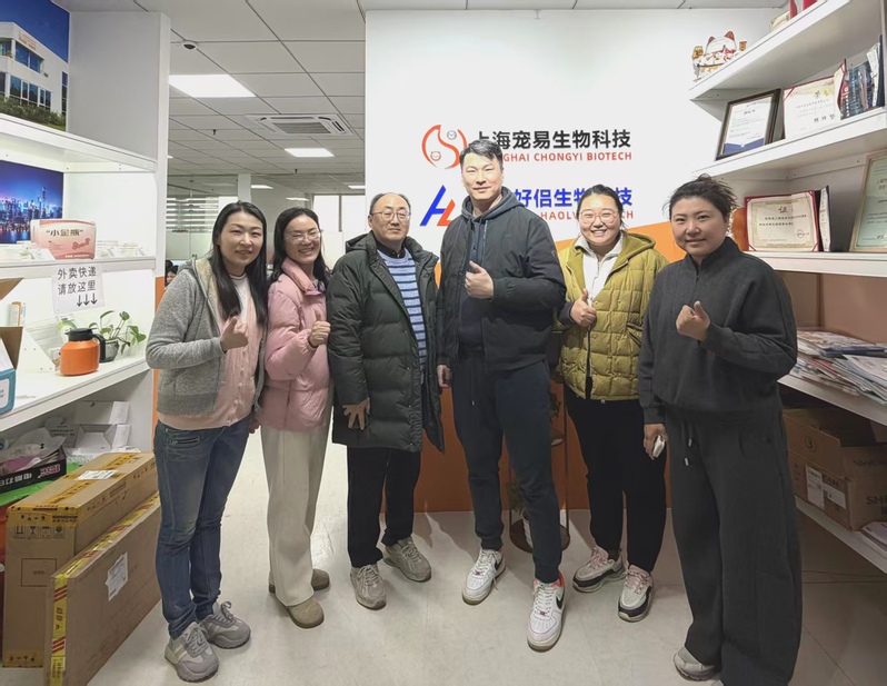 调研团队首先来到上海好侣生物科技有限公司(澳滋麦品牌)。企业负责人隋总、赵总介绍了公司在淘宝、京东等平台从代理到自研、从线下门店到线上线下创新发展的历程,并指出公司目前已与700家宠物医院、3000余家宠物店建立合作关系,未来将进一步拓展产品自研开发与私域运营,为宠物行业技术技能人才提供更多实习与就业机会。