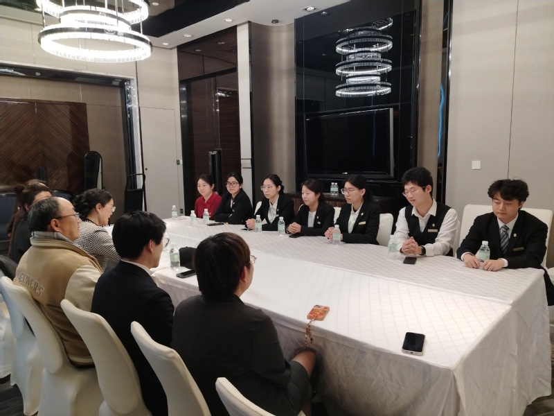 调研组来到浦东丽晶酒店,与多名实习学生面对面座谈。西餐、客房、酒店销售等岗位的学生结合实习体验,提出了对专业术语掌握、Opera系统操作、轮岗机制等方面的建议。酒店方面表示,现在已每日开展英语培训,业务部门有带教老师指导,并为学生提供内部晋升通道,注重培养“留得住、用得上、发展好”的高素质人才。