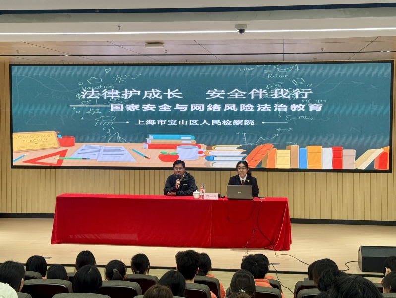 为进一步提升学生的安全意识,增强法治观念,4月14日,学校特邀宝山区检察院检察官郭一杨作《国家安全与网络风险法治教育》专题讲座,各二级学院学生代表聆听了讲座。活动由学生处副处长闵亮主持。
