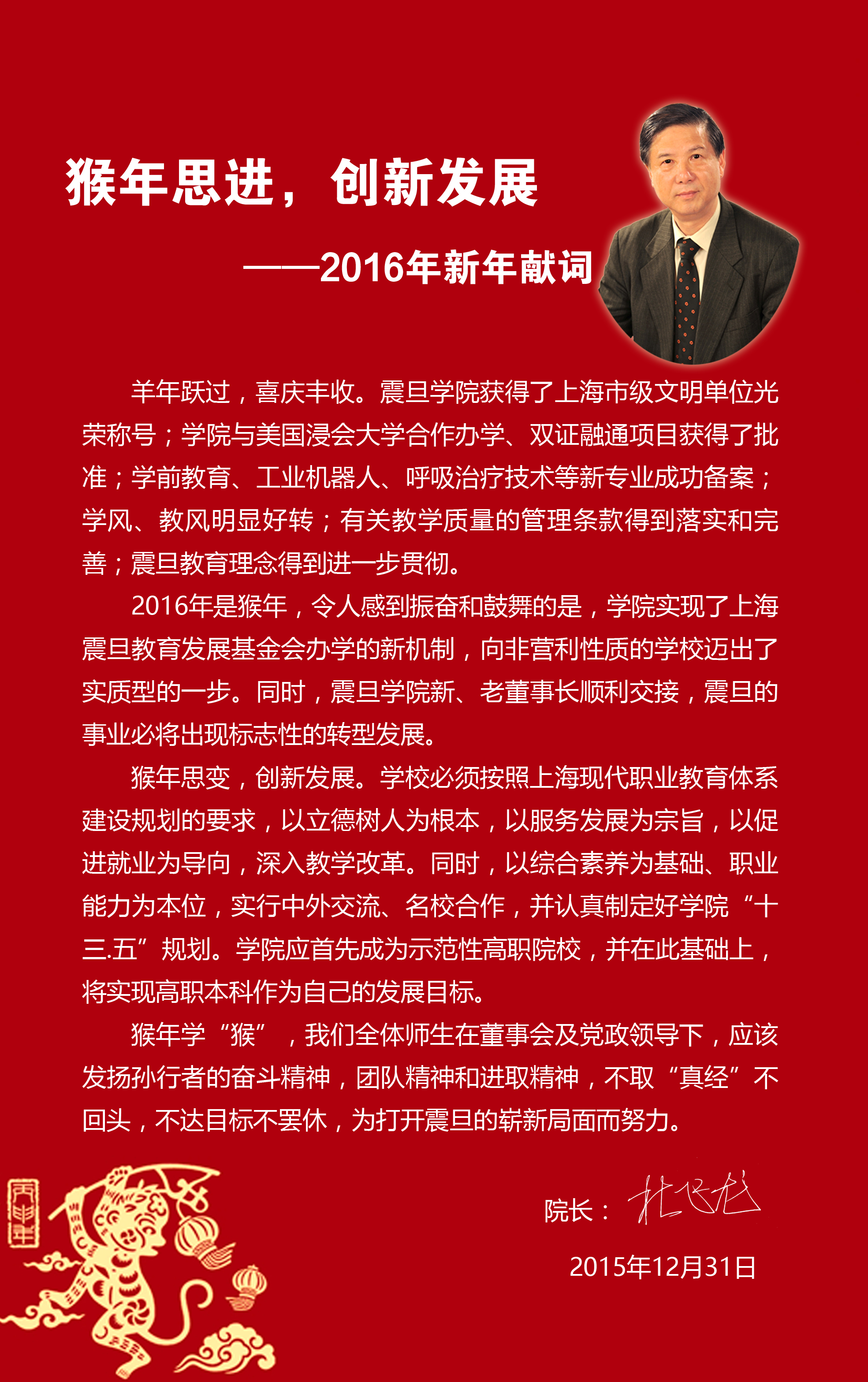 猴年思进,创新发展——2016年新年献词
