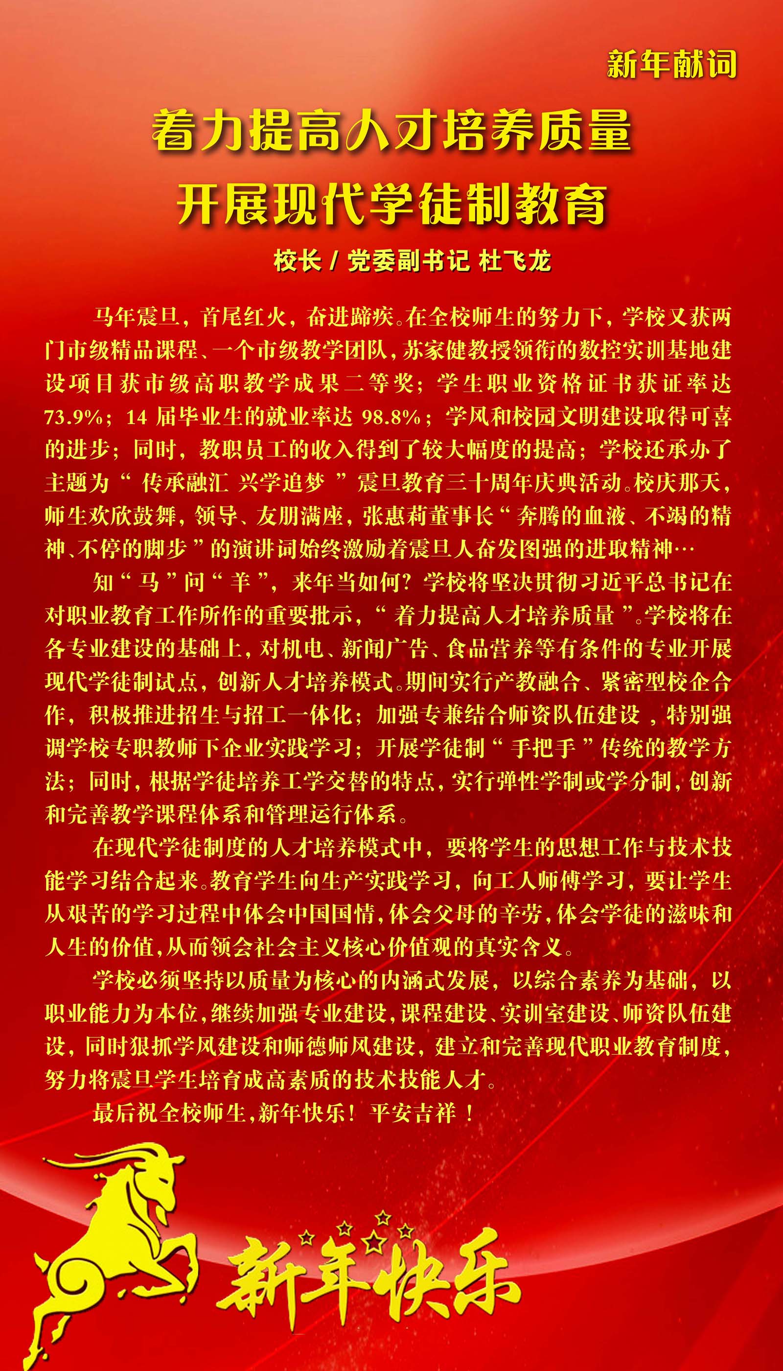 新年献词——着力提高人才培养质量 开展现代学徒制教育